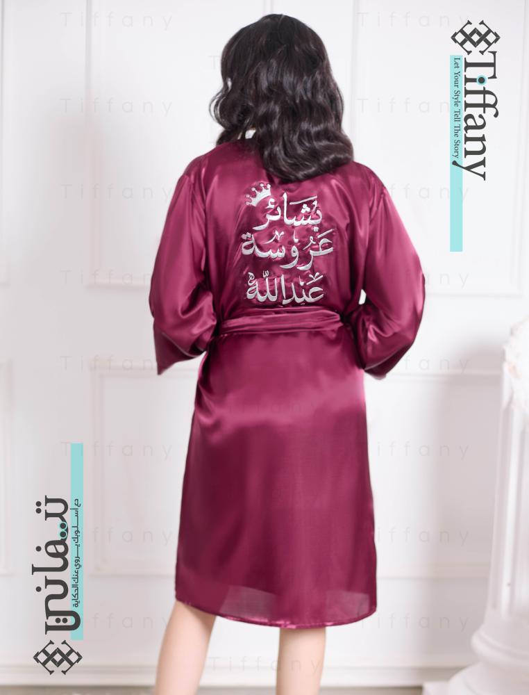 روب عرايس فاخر مطرز بالاسم، مصنوع من أجود أنواع الحرير مع حزام خارجي لربطه. ارتديه في يومك المميز وخلدي أجمل اللحظات برفاهية وأناقة مع روب أبيض مطرز خصيصًا باسمك أو عبارة مميزة من اختيارك.