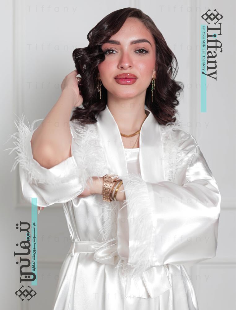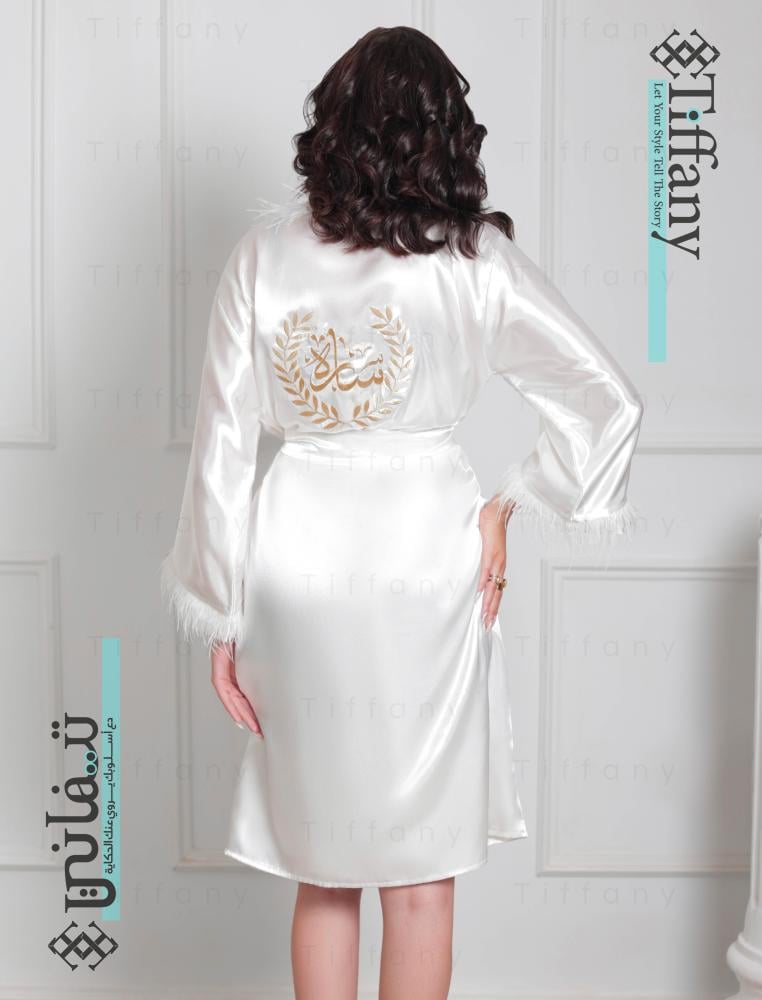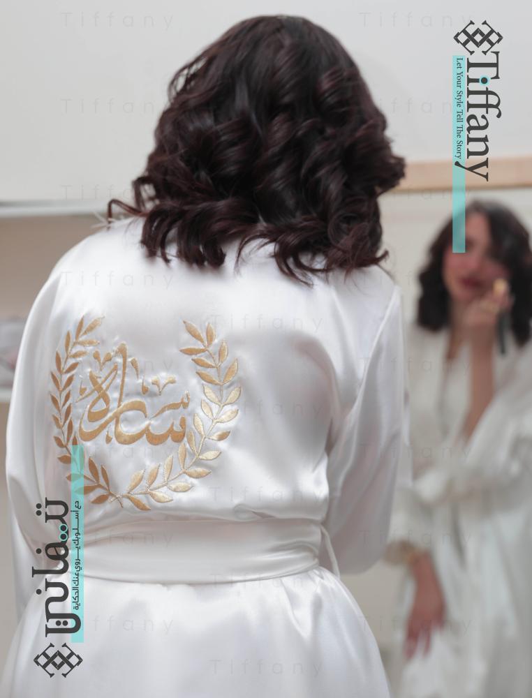 روب عرايس فاخر مطرز بالاسم، مصنوع من أجود أنواع الحرير مع حزام خارجي لربطه. ارتديه في يومك المميز وخلدي أجمل اللحظات برفاهية وأناقة مع روب أبيض مطرز خصيصًا باسمك أو عبارة مميزة من اختيارك.