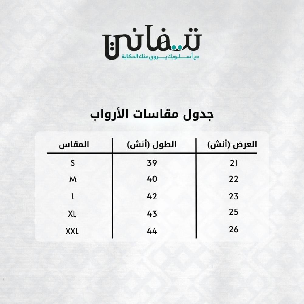 جدول المقاسات للأرواب: