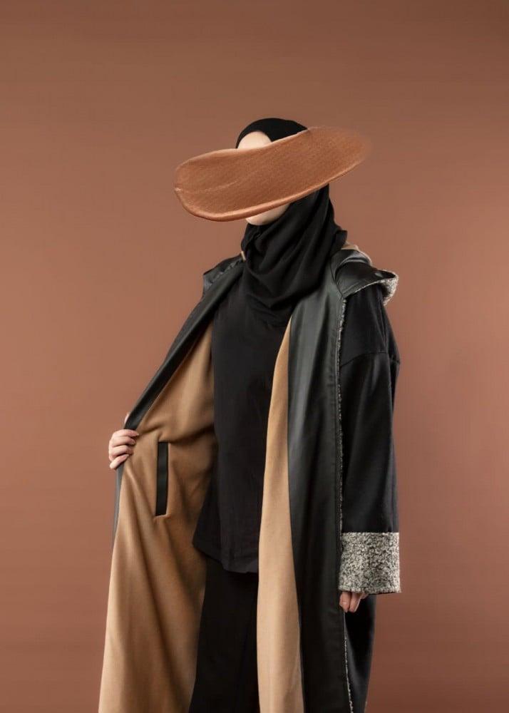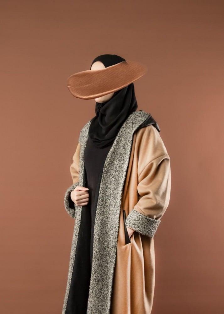فروه جوخ دبل فيس مع شال - أسود وبيج