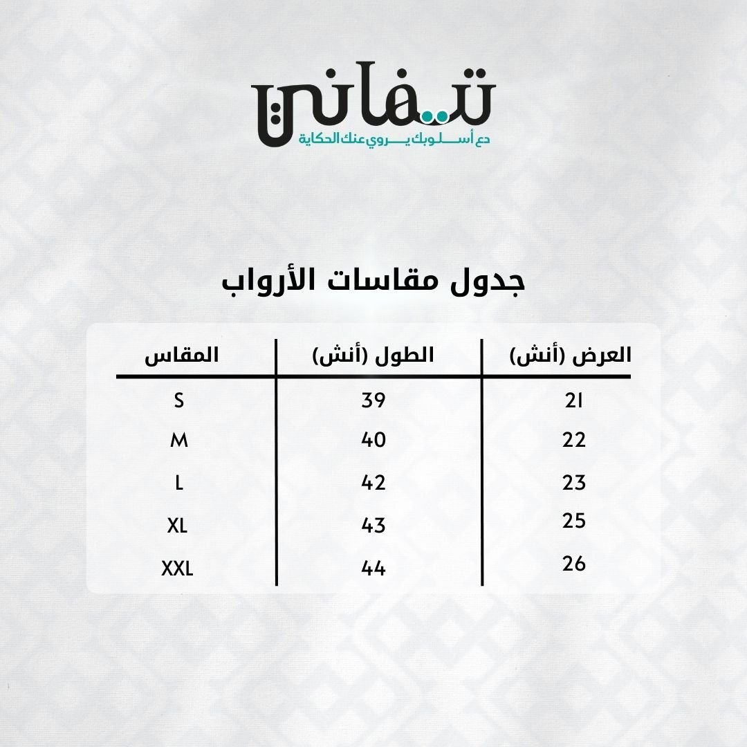 المقاسات المتوفرة: S-M-L-XL-XXL.